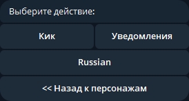 在打开的菜单中,您可以启用或禁用机器人的功能,您可以通过按踢按钮将角色踢出游戏,或按通知按钮打开高级通知设置菜单,或返回主菜单机器人的“返回角色”按钮