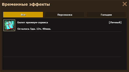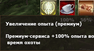 From the moment you activate the premium service, your character receives a buff to the character experience of 100% of the base server experience (additional character effects are not multiplied)