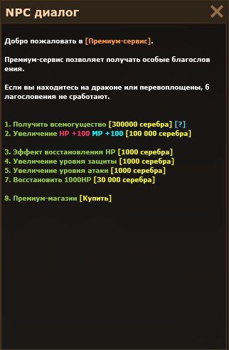 In almost any city you can find a Premium service, this is a special NPC that allows you to use additional privileges.