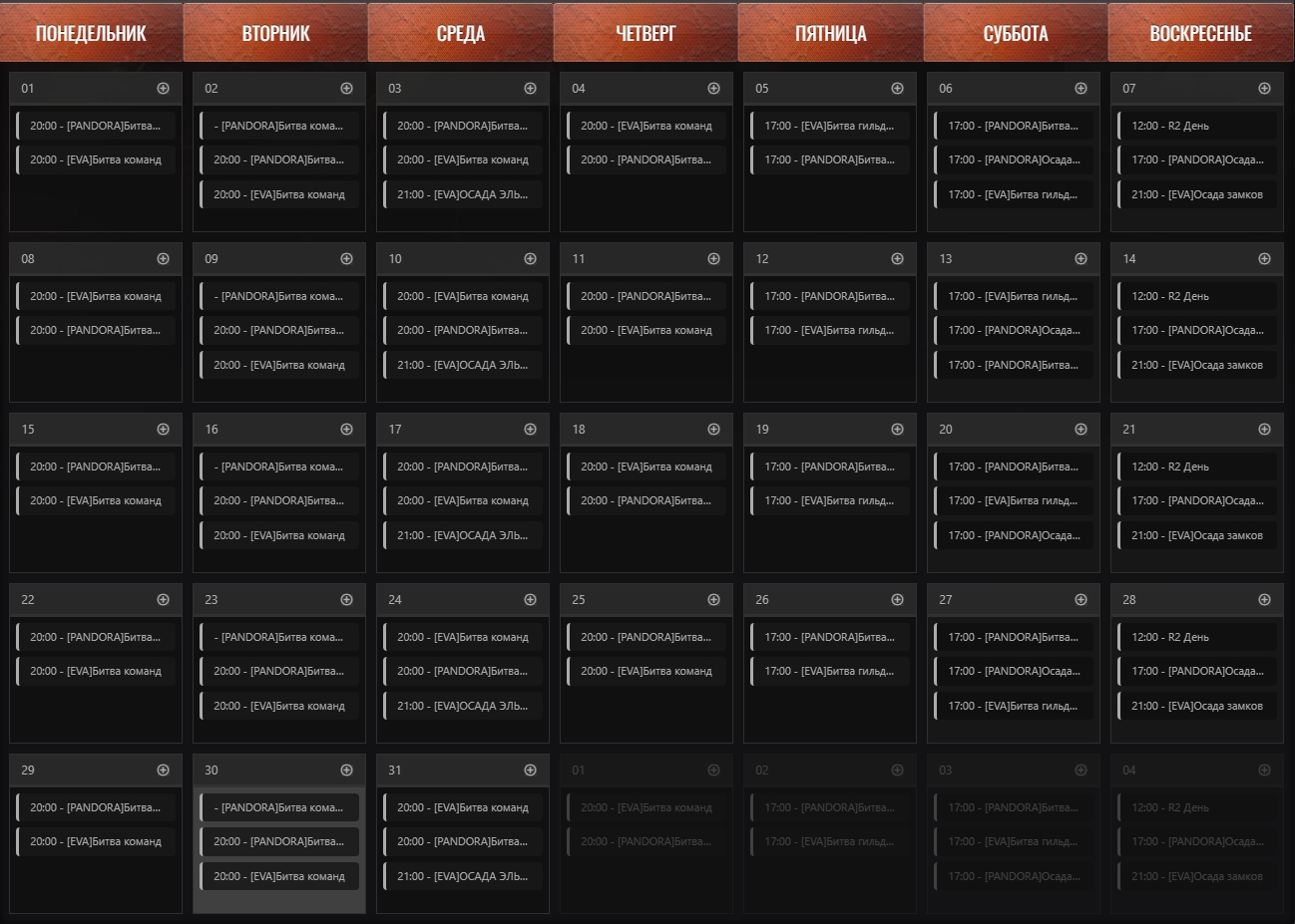 이벤트 캘린더는 서버의 이벤트를 추적하는 데 도움이 되며, 공성전, 전투 및 이벤트가 여기에 표시됩니다.