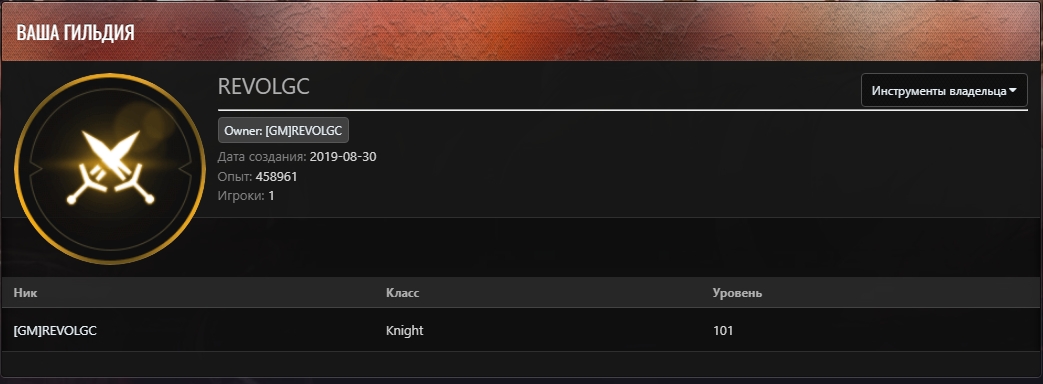 길드 소유자는 소유자 도구를 사용할 수 있습니다. 그들의 도움으로 길드의 플레이어 목록, 입장 날짜 및 플레이어가 마지막으로 입장한 날짜를 볼 수 있습니다.