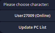 열린 메뉴에서 봇의 기능을 활성화 또는 비활성화할 수 있으며, Kick 버튼을 눌러 캐릭터를 게임에서 추방하거나, 알림 버튼을 눌러 고급 알림 설정 메뉴를 열거나, 메인 메뉴로 돌아갈 수 있습니다. 캐릭터로 돌아가기 버튼이 있는 봇의