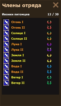 "분대원" _키 N_패널에서 분대에 어떤 애완동물이 있는지 확인할 수 있습니다.