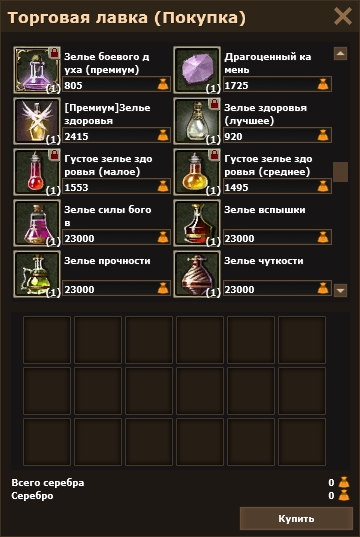 Данный магазин позволяет быстро восстановить здоровье за серебро, а так же приобрести предметы с небольшой скидкой