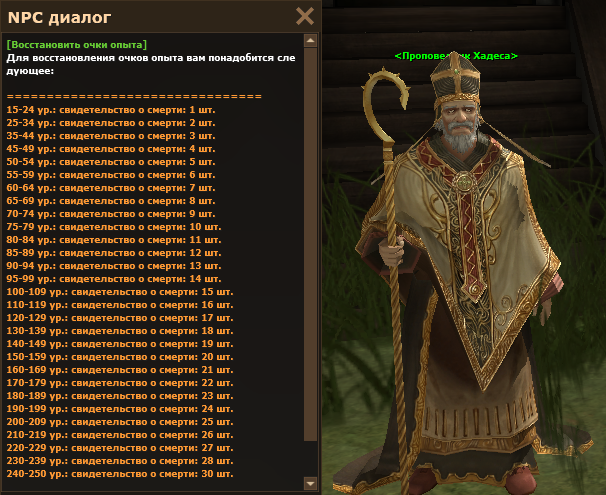 Чем выше уровень персонажа, тем больше свидетельств о смерти вам потребуется.