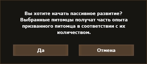 Пассивное развитие питомца распределяет весь получаемый опыт питомца
